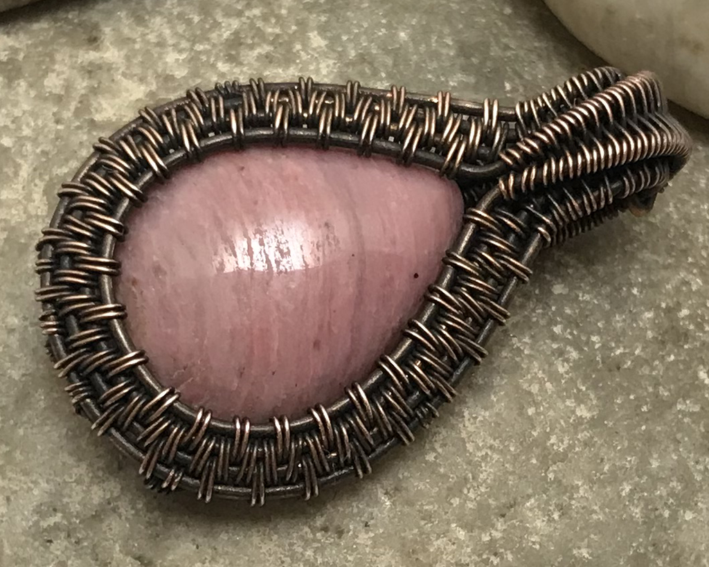 Oxidized Copper Wire Woven Pink Thulite Pendant